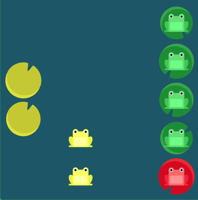 flexbox froggy라는 웹사이트의 마지막 flex 연습 문제이다. 각 색깔의 개구리들을 똑같은 색의 잎위에 위치시켜야 한다.